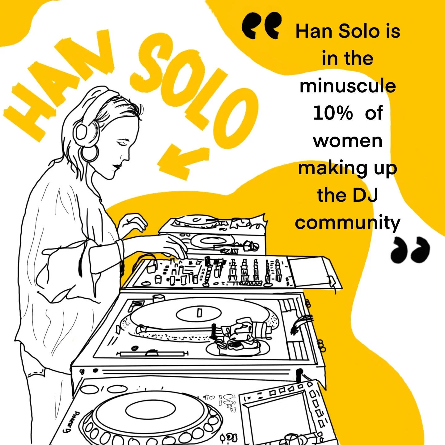 When faced with the brief of ‘Community’, it was hard to find something that really felt worth writing about, however my interest got hooked deep into the flesh of the female DJ community when running into an old friend on a train to Bristol. Though we had known of each other for years, we first met properly in 2022 when she was mixing vinyl for a skate jam. To see such an inspiringly good and incredibly cool woman in an industry I hadn’t really seen a girl in before, was really eye opening. Honestly though, I feel really lucky to have spent my teenage years in a place that believes in everyone’s ability, like Hereford skate park does, I hadn’t considered how enduringly male dominated the music industry was before. In fact, Han solo (Hannah) is in the miniscule 10%[1] of women making up the DJ community!